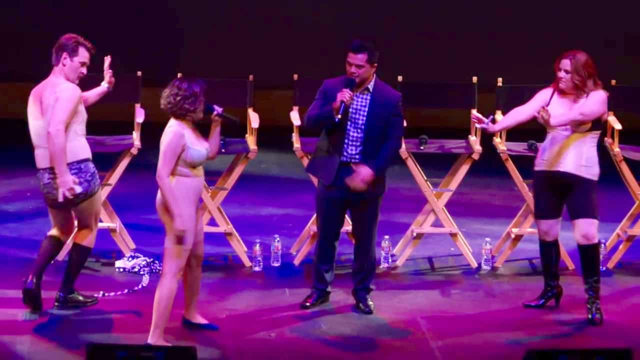At the Television Academy For Your Consideration event, some of the Crazy Ex-Girlfriend cast members recreated The Sexy Getting Ready Song & it was absolutely glorious. Rachel started off the number and was then joined by Donna Lynne Champlin & Pete Gardner who did the backup dance moves and vocals ALSO in spanx. Vincent Rodriguez III briefly came out to perform the rap part in the middle of the song.