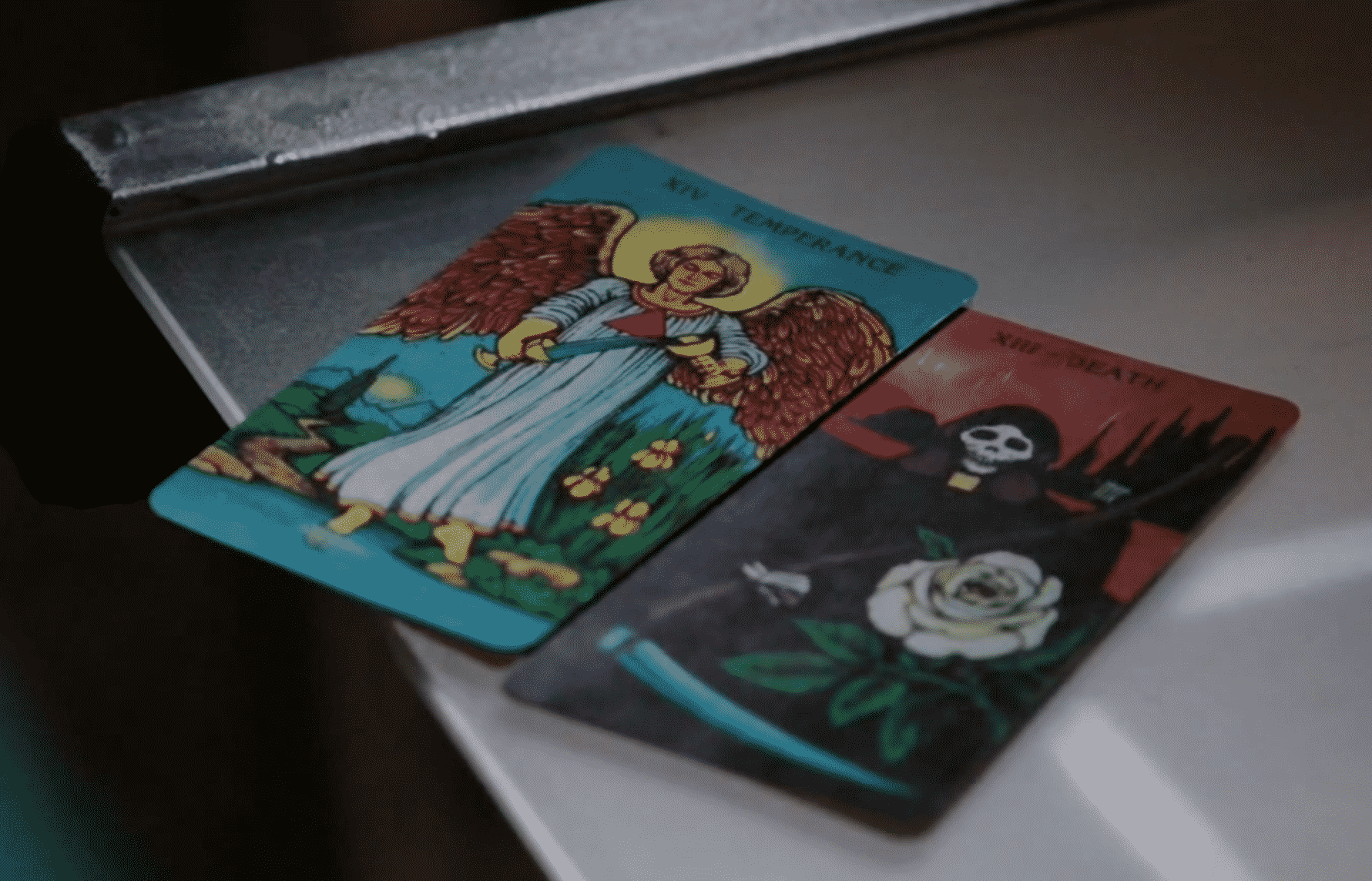 Booth understands what Brennan is feeling and why, but he also implores her to listen to him. He pulls the cards he drew from Avalon’s deck from his jacket. And in that moment, my stomach sank. Booth had randomly selected the Temperance card and the Death card. Could the message be any clearer? “You are in danger.” Booth is spiritual in his own right, though he has never been one to believe in the supernatural outside the confines of his religion. But this has clearly rattled him. If he ignored even the smallest of omens during this time, no matter how crazy it seems, he could never forgive himself if something happened. This is a life and death situation. And in Booth’s mind, it’s all happening because of him. Even though we know that he is not actually to blame. But that’s for another post. Looking at the cards was enough to shake Brennan’s composure as well. She stares at Booth with a uneasy look on her face as the scene fades out.